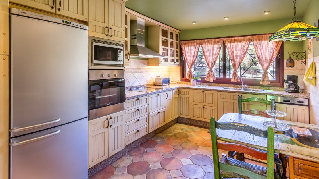 The spacious kitchen is fully equipt with all the appliances and also hosts a separate area with a table and chairs.