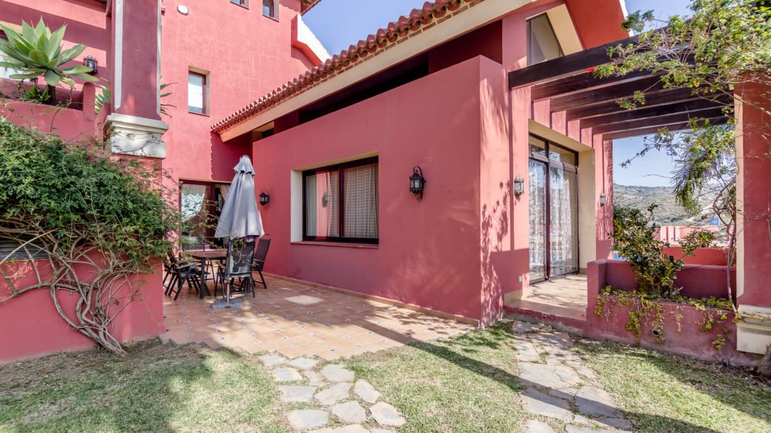 Situated in a gated community the villa hosts a large private garden and pool.